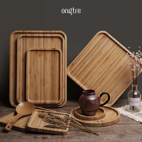 ❁ Khay gỗ tre decor hình chữ nhật, Khay đựng đồ ăn, Khay uống trà , Khay tròn, vuông | ongtre (Vietnam).