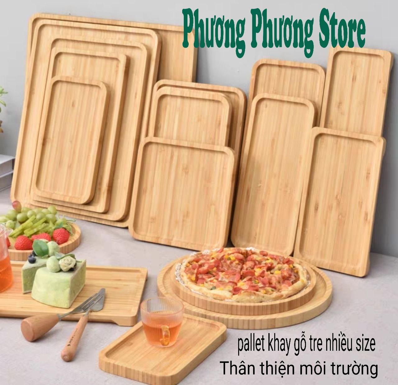 ✨Khay gỗ tre tự nhiên chữ nhật nhiều cỡ size