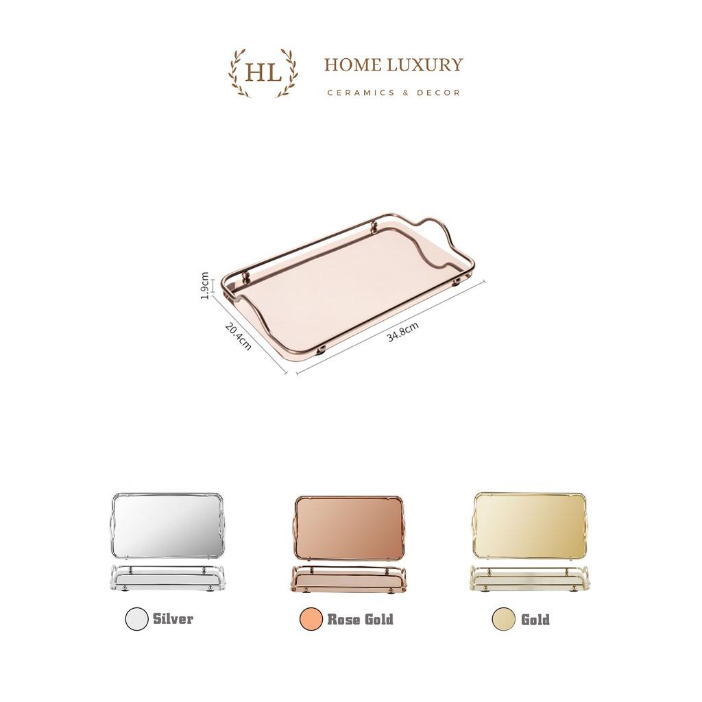Khay trà bằng hợp kim cao cấp. - Khay để bàn trà decor được thiết kế kiểu dáng hình chữ nhật, tròn cỡ lớn - Khay trà được làm bằng chất liệu hợp kim mạ,