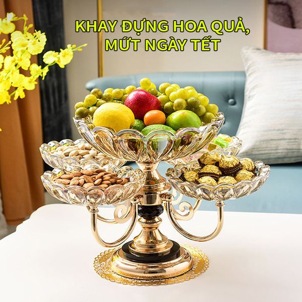 Kiểu dáng sang trọng Tiện dụng và tối ưu Làm quà tặng hoặc dùng trong lễ hội Khay thủy tinh 2 tầng là đồ gia dụng - trang trí nội thất đa năng có thể