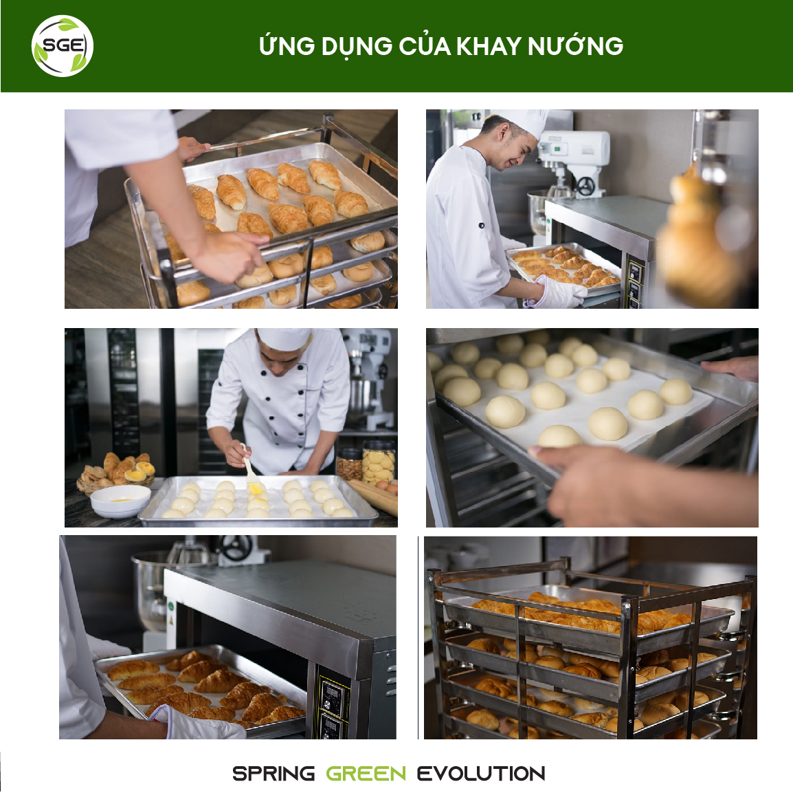 Khay nướng bánh của SGE có thể dùng để sấy/nướng đa dạng các loại bánh như bánh mì, bánh ngọt, bánh gatô hay thậm chí là đồ ăn hoặc thực phẩm khác tuỳ theo nhu cầu.