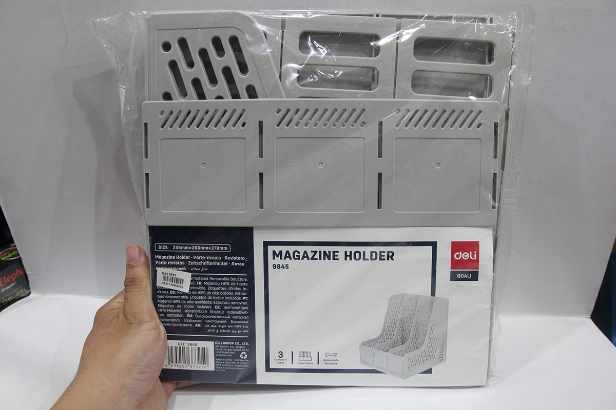Khay Tài Liệu Nhựa 3 Ngăn Deli 9845 được thiết kế 3 ngăn dạng đứng, phù hợp để lưu trữ các loại tài liệu hoặc các dụng cụ văn phòng phẩm khác. Các chi tiết nhựa của sản phẩm được gia công sắc sảo, mài nhẵn, không để lại góc cạnh, rất an toàn khi sử dụng. Sản phẩm được làm bằng nhựa cứng cao cấp, bền chắc, đồng thời rất ít bám bụi, giúp bạn dễ dàng vệ sinh, lau chùi.