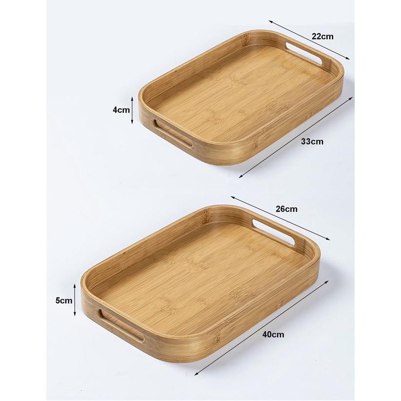 Thông tin chi tiết sản phẩm: Khay trà gỗ tre tự nhiên cao cấp chữ nhật có tay cầm