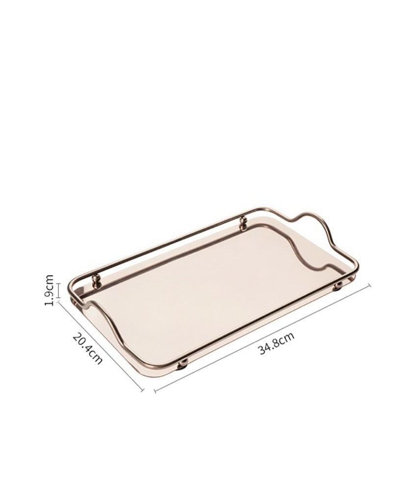 KHAY CHỮ NHẬT TRÁNG GƯƠNG CAO CẤP PHONG CÁCH BẮC ÂU CHẤT LIỆU: Viền khung kim loại, mặt tráng gương trong đẹp KÍCH THƯỚC: 35.5*25*5cm MÀU SẮC: Vàng kim, mặt gương trắng CÓ NHIỀU LOẠI