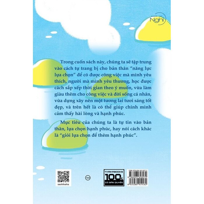 Mua tại TiktokKhéo Lựa Chọn Để Thêm Hạnh Phúc Trong cuốn sách này, chúng ta sẽ tập trung vào cách tự trang bị cho bản thân “năng lực lựa chọn” để có được công việc mà mình yêu thích, người mà mình yêu thương, học được cách sắp xếp thời gian theo ý muốn, vừa làm giàu thêm cho công việc và đời sống cá nhân, vừa dựng xây nên một tương lai tươi sáng tốt đẹp, và trên hết là, có thể giúp chính mình cảm thấy hài lòng và hạnh phúc.