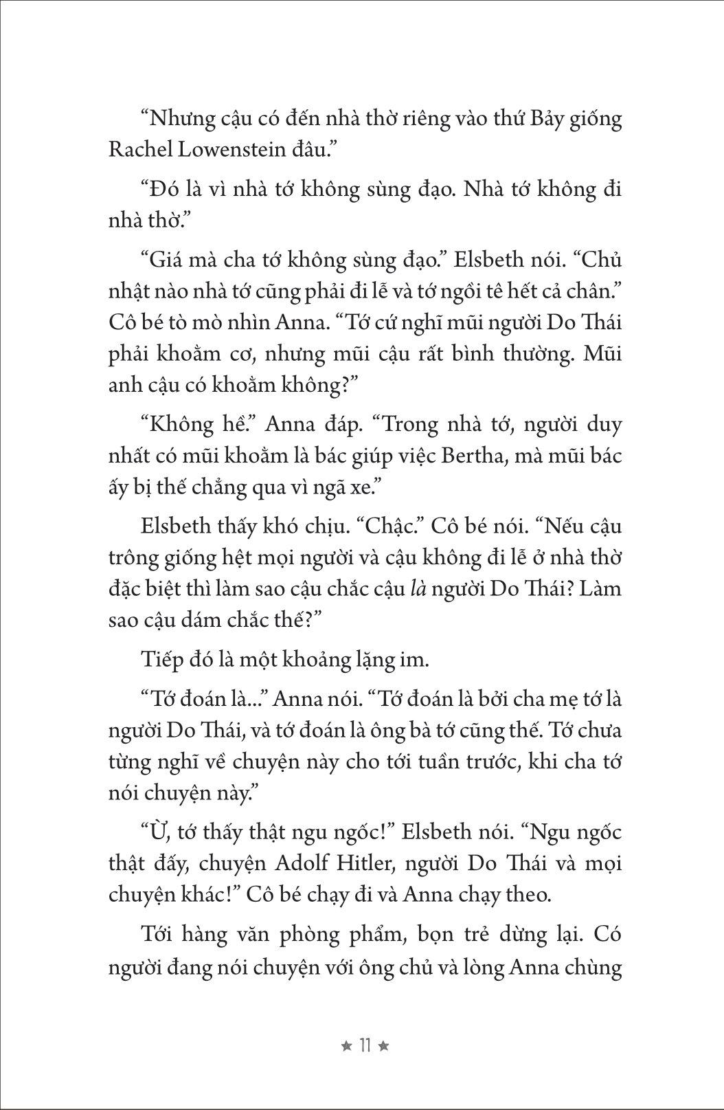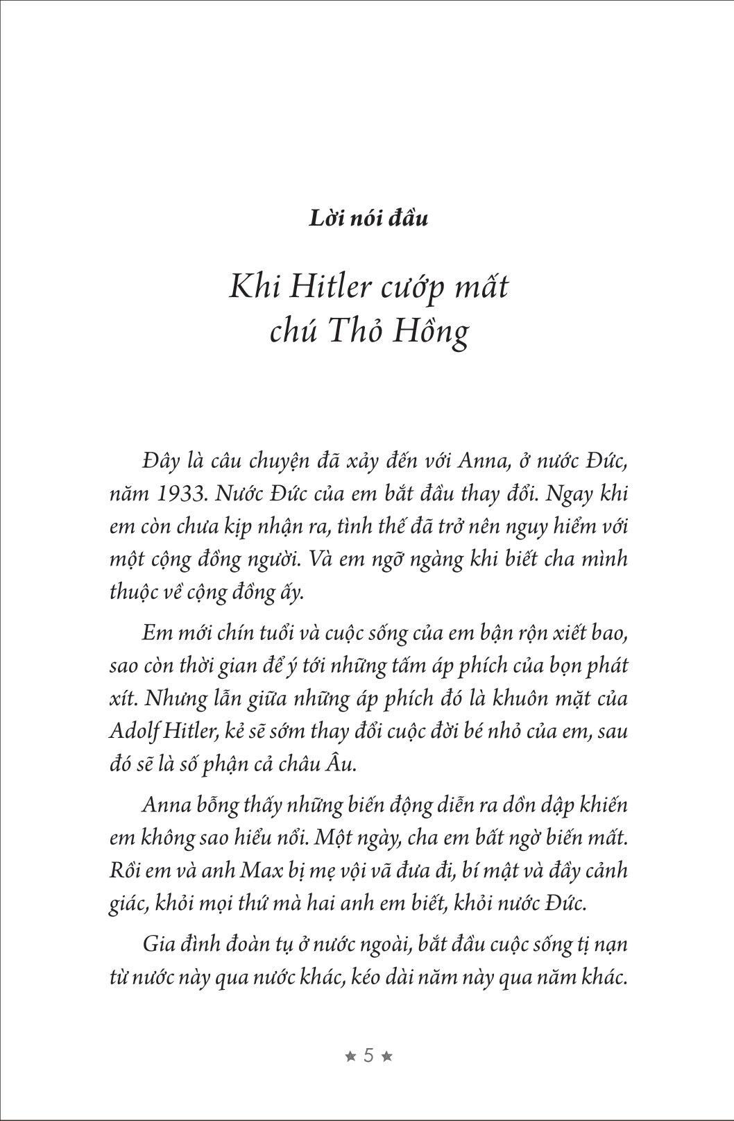 Đây là câu chuyện đã xảy đến với Anna, ở nước Đức, năm 1933. Đất nước của em bắt đầu thay đổi. Ngay khi em còn chưa kịp nhận ra, tình thế đã trở nên nguy hiểm với một cộng đồng người. Và em ngỡ ngàng khi biết cha m.ình thuộc về cộng đồng ấy.