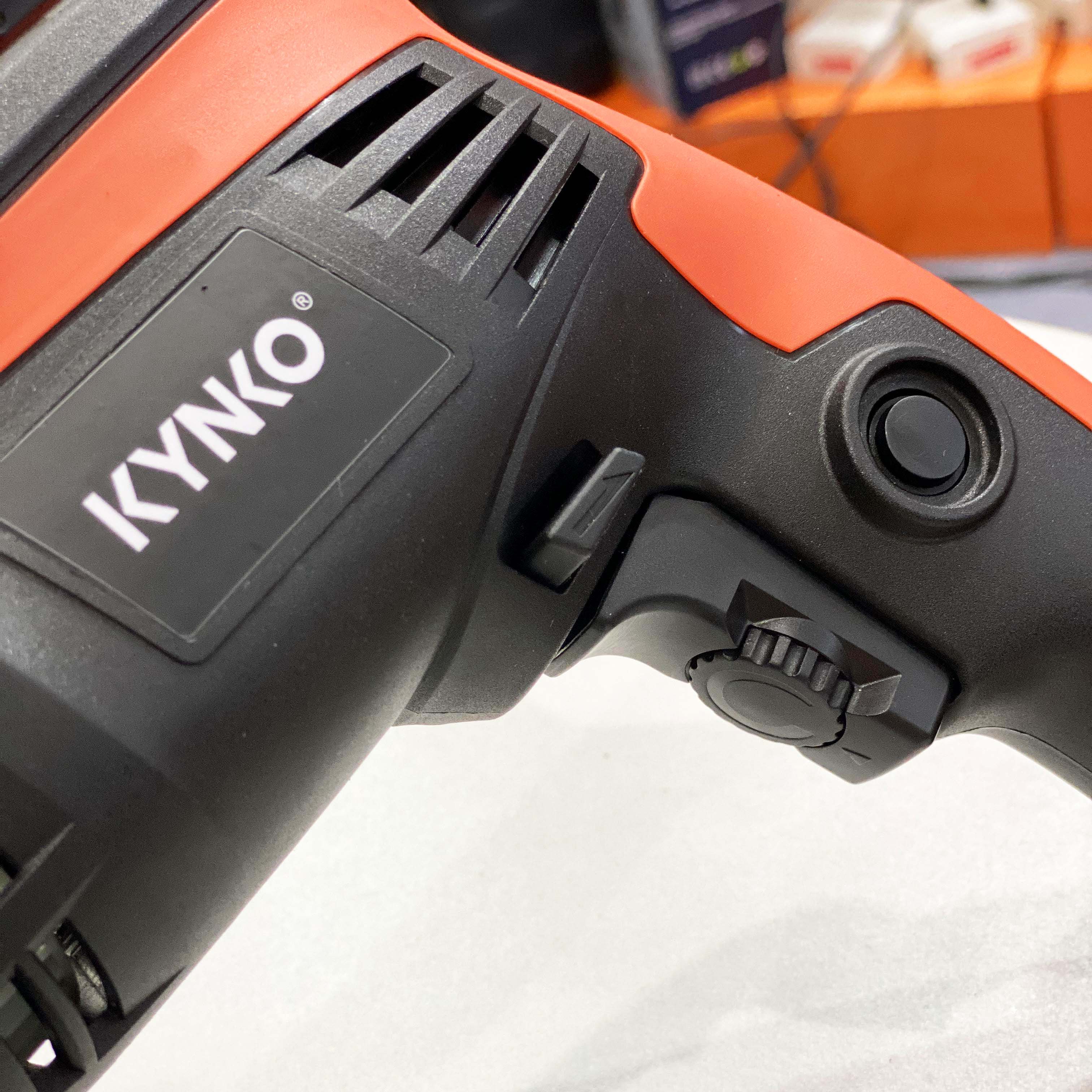 Máy khoan động lực Kynko sử dụng đầu cặp có khóa có thể dùng tới mũi khoan Ø13mm. Vỏ máy được sản xuất từ nhựa cao cấp rất chắc chắn, không biến dạng khi chịu tải lớn. Báng cầm được thiết kế vừa tay, có lớp lót cao su êm và tạo masat tay khi sử dụng. Thân máy còn được đỡ bằng 1 tay cầm phụ lắp thêm tăng độ ổn định, chính xác khi khoan.