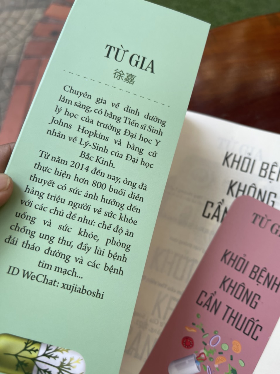 Thông tin tác giả: TÁC GIẢ TỪ GIA là chuyên gia dinh dưỡng lâm sàng, có bằng Tiến sĩ Sinh lý học của Đại học Y Johns Hopkín và bằng cử nhân về Lý-Sinh của Đại học Bắc Kinh. Từ năm 2014 đến nay, ông đã thực hiện hơn 800 buổi diễn thuyết có sức ảnh hưởng đến hàng triệu người về sức khỏe với các chủ đề như: chế độ ăn uống và sức khỏe, phòng chống ung thư, đẩy lùi đái tháo đườ