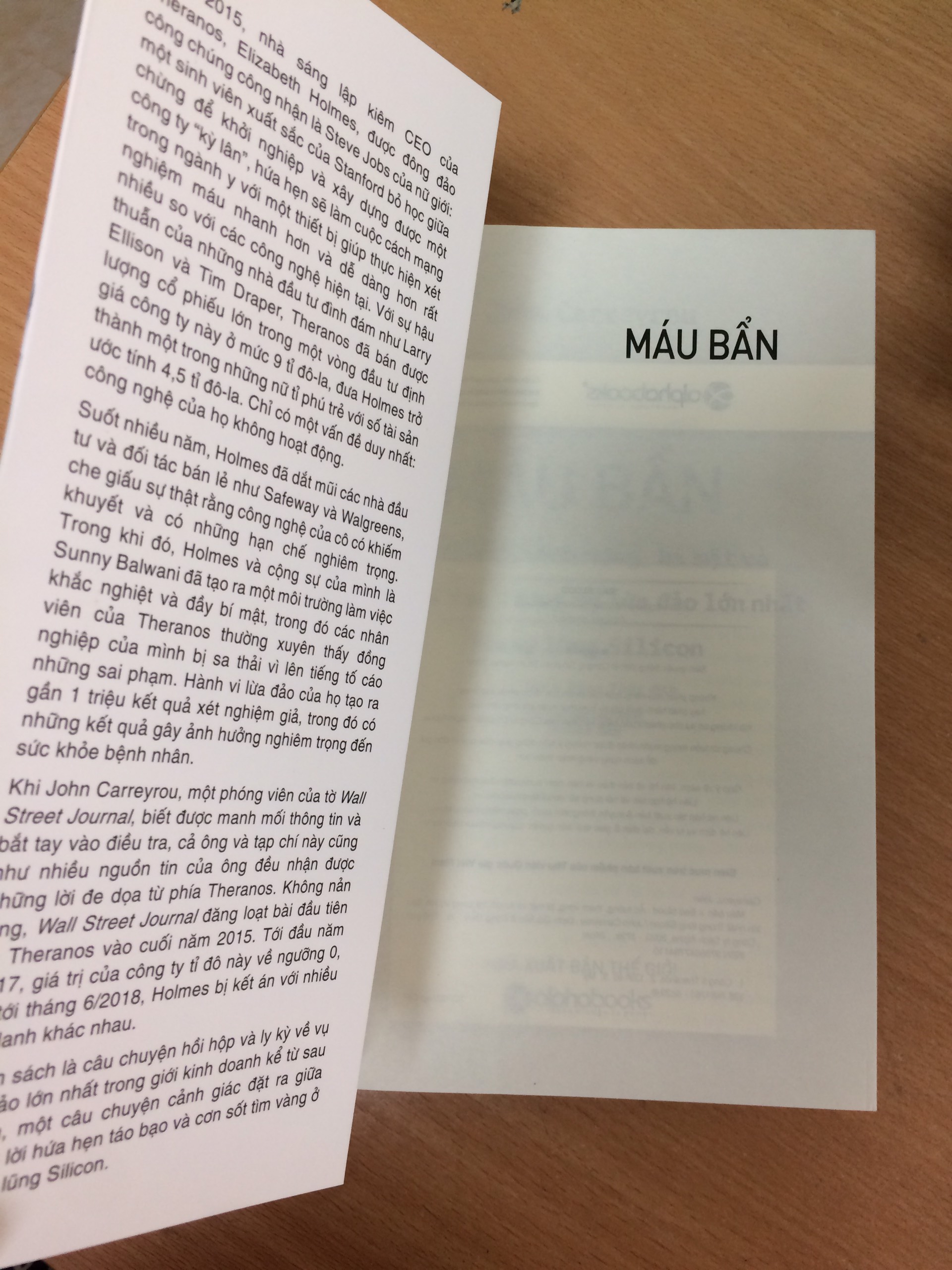 Mô Tả Sản Phẩm“Bạn sẽ không muốn đặt xuống cuốn sách hấp dẫn này đâu. Dù bạn nghĩ câu chuyện về Theranos có tồi tệ ra sao, cuốn sách này sẽ cho bạn biết thực tế nó còn tồi tệ hơn thế gấp vạn lần....