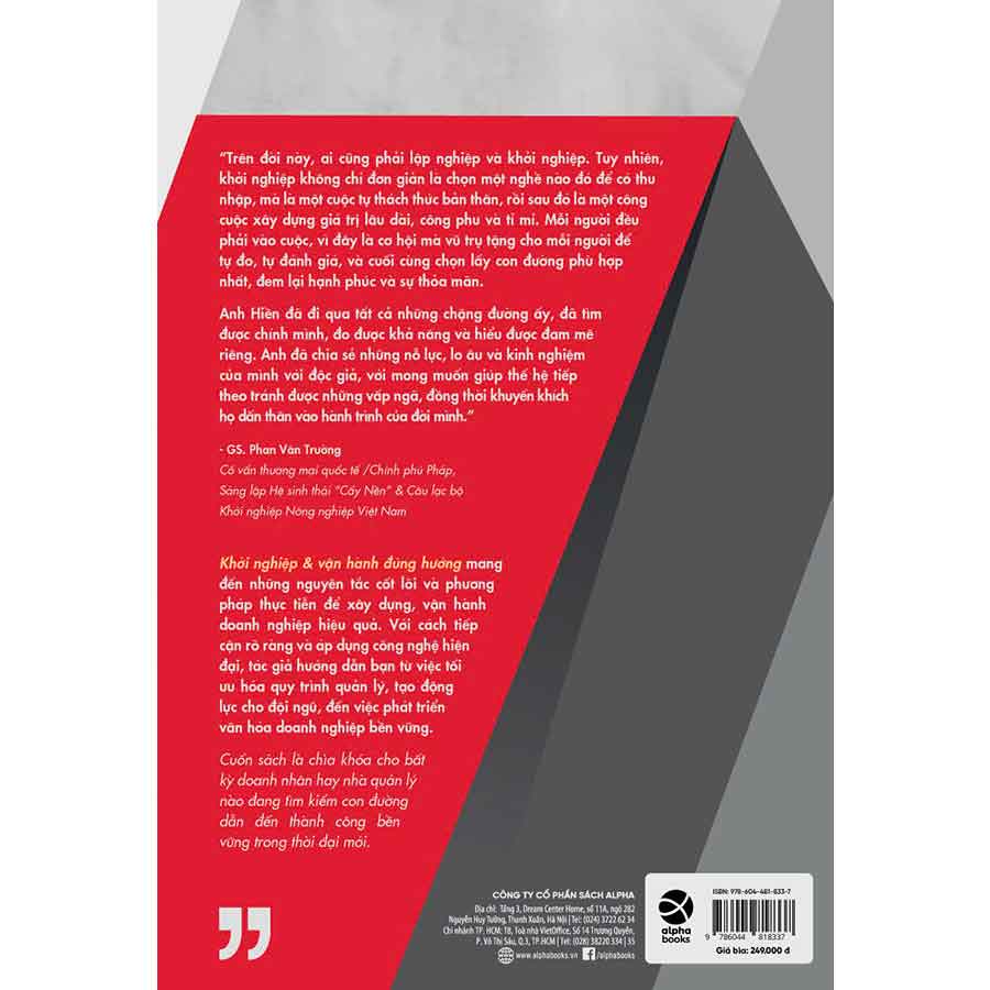 Khởi Nghiệp Và Vận Hành Đúng Hướng cung cấp một lộ trình chi tiết từ việc khởi đầu ý tưởng đến xây dựng và vận hành doanh nghiệp hiệu quả, bền vững. Tác giả Lê Đình Hiền chia sẻ kinh nghiệm thực tiễn, những bài học từ thất bại và thành công trong hành trình khởi nghiệp. Với cách tiếp cận rõ ràng và áp dụng công nghệ hiện đại, tác giả hướng dẫn bạn từ việc tối ưu hóa quy trình quản lý, tạo động lực cho đội ngũ, đến việc phát triển văn hóa doanh nghiệp.