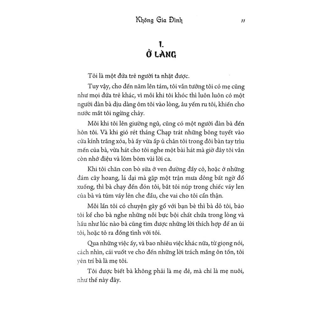 Không Gia Đình là tiểu thuyết nổi tiếng nhất trong sự nghiệp văn chương của Hector Malot. Hơn một trăm năm nay, tác phẩm giành giải thưởng của Viện Hàn Lâm Văn học Pháp này đã trở thành người bạn thân thiết của thiếu nhi và tất cả những người yêu mến trẻ khắp thế giới.