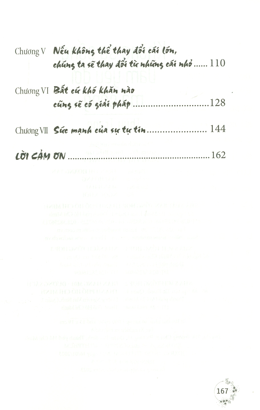 Cuộc sống quanh ta đầy màu nhiệm, chánh niệm là trái tim của thiền tập, là nguồn năng lượng xuyên suốt không thể thay đổi. Một người sống trong chánh niệm, tâm an, sẽ khiến những người xung quanh vui vẻ, an nhiên và thậm chí thay đổi cả xã hội. “Tất cả chúng ta đều có hạt giống của niệm và định” “Định làm phát sinh hỷ lạc” Định nguồn căn, có định con người sẽ cảm thấy đang thực sự sống chứ không phải chỉ tồn tại. Cảm nhận cuộc đời tươi đẹp không qua đôi mắt mà qua hơi thở và tâm hồn. Thiền sư Lâm Tế đã nói rằng: “Phép lạ là đi trên mặt đất mà không phải đi trên mặt nước hay đi trên than hồng”. Tất cả những gì ta làm đều cốt yếu là để tâm an. Mỗi ngày, ta đì tìm tự do cho hạnh phúc, hay hạnh phúc để được tự do?! Nếu cứ mải mê mắc kẹt trong quá khứ và lo buồn về tương lai, hiện tại sẽ tự nhiên ngả màu héo úa. Nghỉ ngơi là bước đầu tiên của thiền tập, và con đường ngắn nhất là thả lỏng và không gượng ép. Sống là để không uổng phí một đời, sống trọn vẹn từng giây phút, thanh thản từng hành động. Bước đi một cách thoải mái, an lạc, đi như không đi sẽ không thấy mệt mỏi. Sự cố gượng là không cần thiết nếu ta hiểu được rằng mỗi bước đi là mỗi bước được tiếp xúc với cuộc đời và sự màu nhiệm vô tận. Chạm vào đất Mẹ là nguồn căn của “Sám Pháp địa xúc”, người thường cũng có thể thực hành khi bế tắc, lo sợ, Người nhẫn nại bảo hộ, che chở và cho ta lối thoát, mọi thứ tự khắc trở nên nhẹ nhàng. Cuốn sách tiếp tục với Năm uẩn trong một con người: sắc, thọ, tưởng, hành, thức, đều cần trị vì, cai quản. Có chánh niệm sẽ nhận diện được