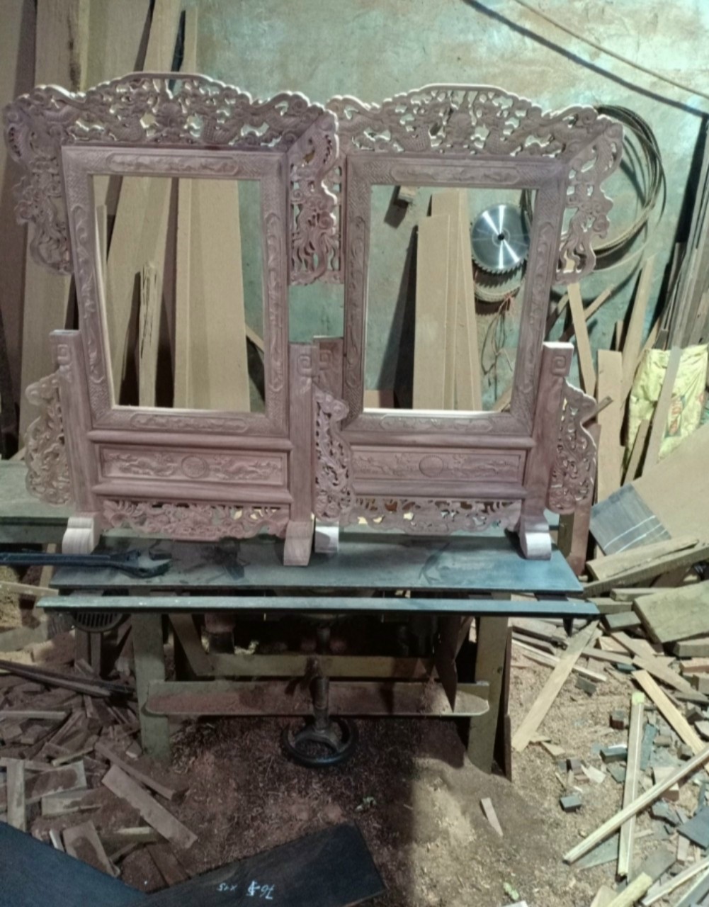 _ Khung ảnh thờ được làm bằng chất liệu gỗ hương tự nhiên 100% _ Kích thước khung viền ngang 52 cao 54sâu 11cm .Khung ảnh đã được lồng kính và có cả tấm ván