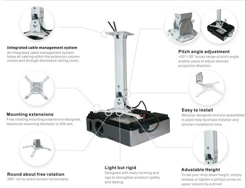 Giá treo điện chuyên dùng dành cho máy chiếu, được sử dụng rất phổ biến trong các công trình mang tính chuyên nghiệp, trang trọng, đa năng. Giá treo được lắp âm trần được