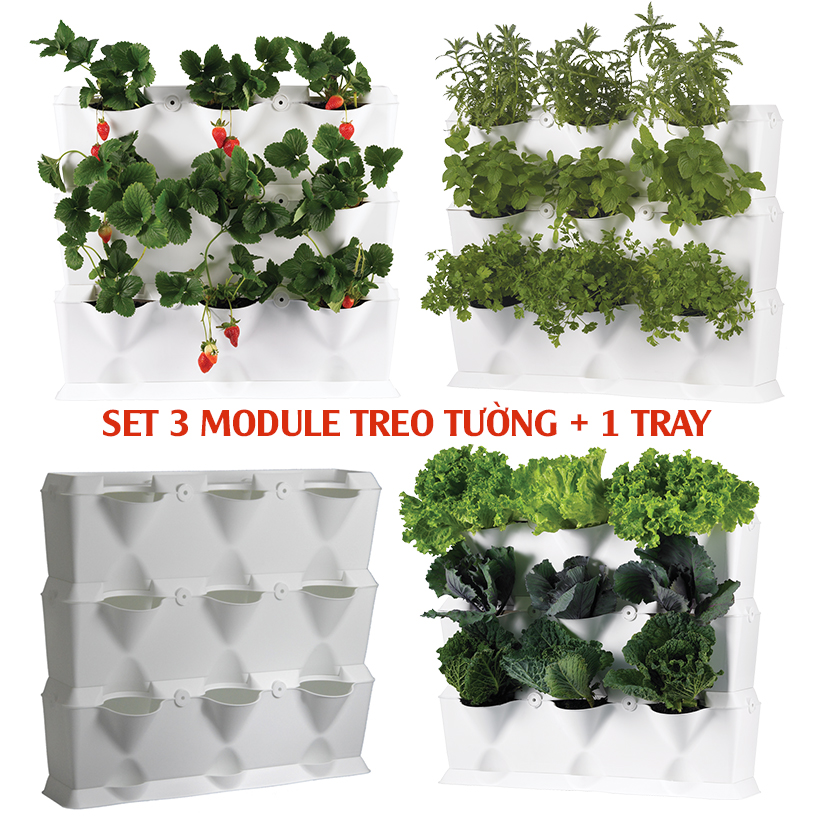 Chậu Trồng Cây Đứng Nhập Khẩu Châu Âu áp tường dạng tường xanh thẳng đứng hiệu Minigarden Vertical (Trọn bộ 3 SET + 1 KHAY nước) - NHẬP KHẨU: Minigarden Bồ Đào Nha - Kích