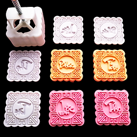 ✨Khuôn trung thu lò xo, khuôn ép xôi 4 mặt hình vuông Phúc Lộc Thọ Tài - Mã số 1095