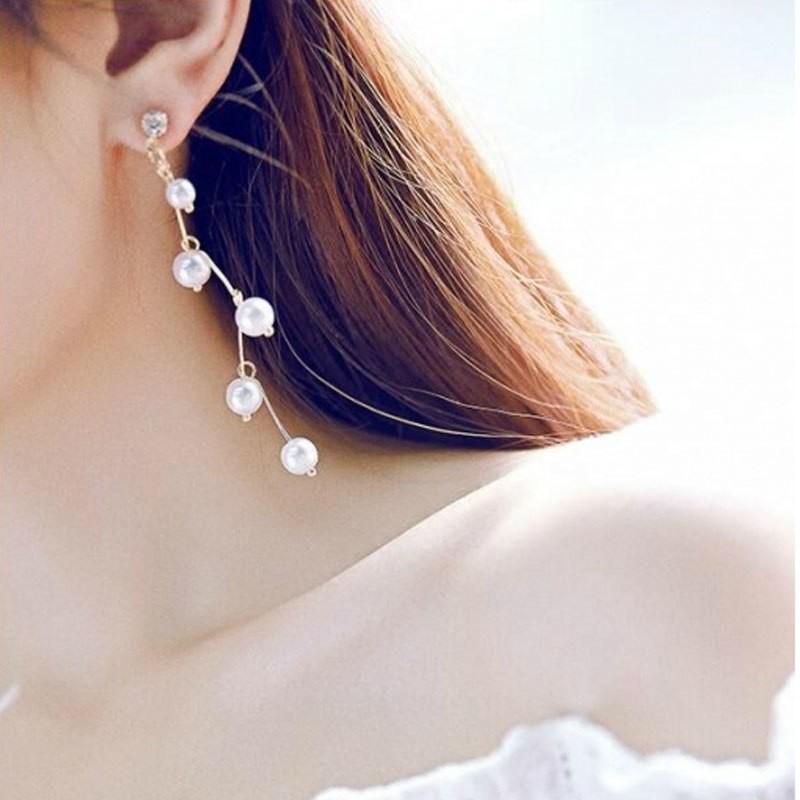 Khuyên tai nữ ECJ12 ngọc trai nhân tạo dáng dài thanh lịch ChariotJewelry