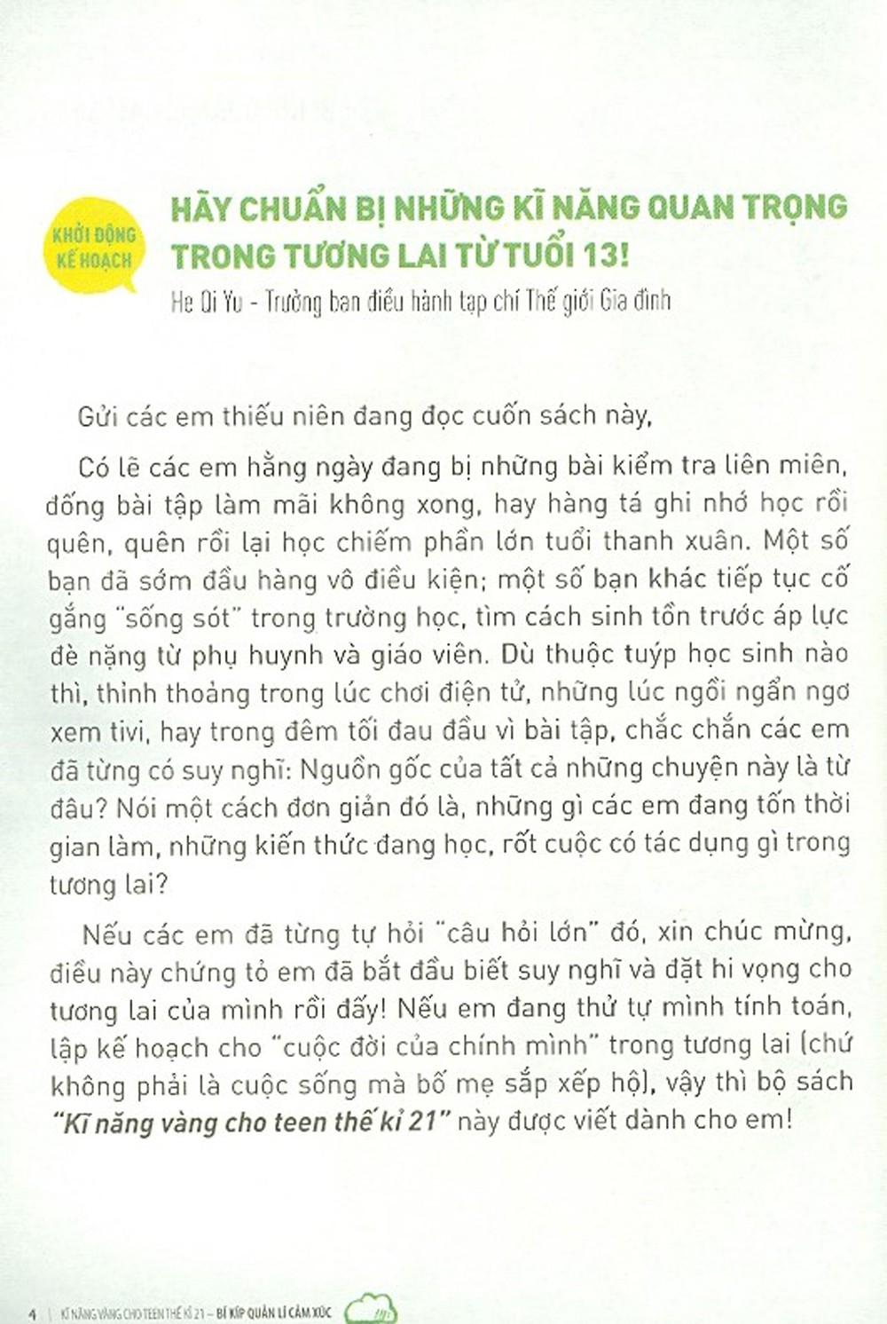Tuổi teen là giai đoạn phát triển vô cùng lí thú. Học hỏi kiến thức, hiểu bản thân và trau dồi khả năng học tập khác nhau là nhiệm vụ quan trọng nhất của những người trẻ tuổi. Bộ sách này tập trung vào cuộc sống và tình trạng học tập của học sinh phổ thông cơ sở và phổ thông trung học, tìm ra những vấn đề mà các bạn trẻ hay gặp nhất, những kĩ năng cần thiết nhất. Các chuyên gia hàng đầu trong nhiều lĩnh vực đã xây dựng bộ sách “Kĩ năng vàng cho teen thế kỉ 21” với những nội dung và giải pháp phù hợp, để độc giả trẻ không chỉ giải quyết được những vấn đề của hiện tại, mà còn bồi đắp nền tảng cơ bản cho các hoạt động suốt đời người.