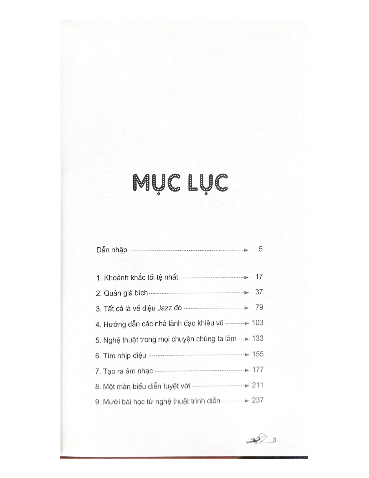 Kinh Doanh Như Trình Diễn Nghệ Thuật, Lãnh Đạo Như Đạo Diễn Sân Khấu là cách tiếp cận mới mẻ trong quản trị kinh doanh với châm ngôn: các tổ chức và các nhà lãnh đạo có thể học hỏi từ nghệ thuật. Mượn hình ảnh các nghệ sĩ biểu diễn các loại hình nghệ thuật khác nhau, tác giả nhấn mạnh một yếu tố không thể thiếu trong quản trị - kỹ thuật truyền cảm hứng, lấy con người làm trung tâm. Ngày nay, thành thạo kỹ thuật và nắm vững chuyên môn thôi chưa đủ để gặt hái được thành công như mong đợi, trong nghệ thuật lẫn trong kinh doanh. Chính vì lý do đó, nếu kinh doanh là một màn trình diễn thì hãy biến nó thành màn trình diễn chói sáng và để lại dấu ấn trong lòng khán giả.