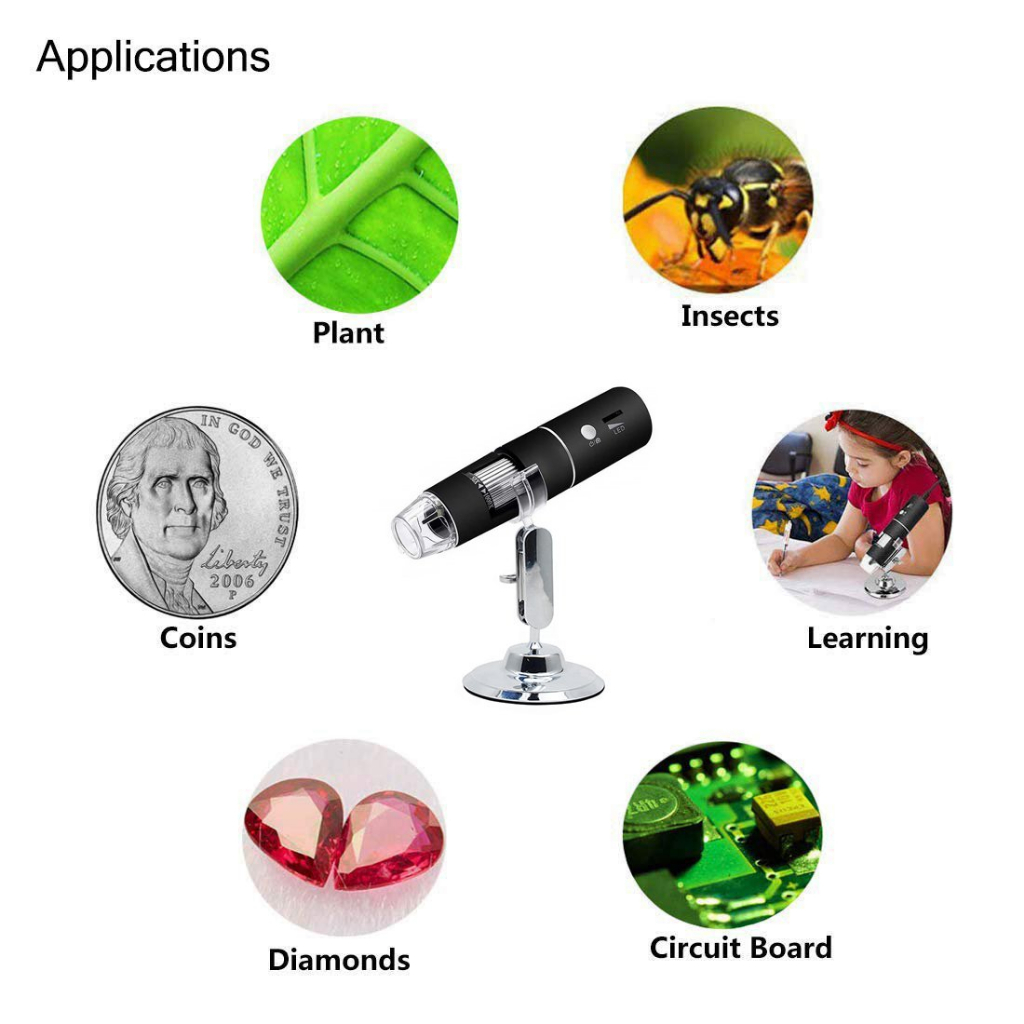 ROGTZ Kính Hiển Vi Phóng Đại 50-1000x Kết Nối Wifi/Có Dây Dùng Cho Điện Thoại, PC Độ Phân Giải 1080P Với 8 Đèn Led Trợ Sáng. WiFi Digital Microscope HD1080P 1000X USB Microscope 8 LED