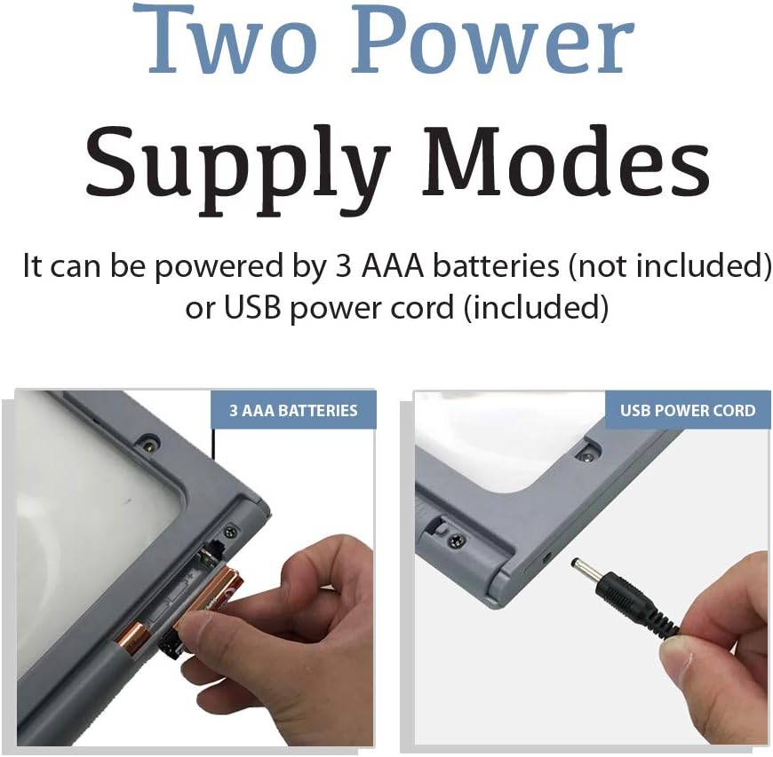 Kính lúp là một khung phóng đại khổ lớn mạnh mẽ. Dụng cụ kính lúp hỗ trợ này có thấu kính acrylic linh hoạt với độ phóng đại gấp 3 lần và có khung đỡ. MagniPros 3X cực kỳ mỏng và cực kỳ nhẹ, vì vậy bạn có thể dễ dàng mang theo bên mình ở bất cứ đâu. Kính lúp có thể dùng Pin AAA hoặc nguồn ngoài qua cáp cổng USB.