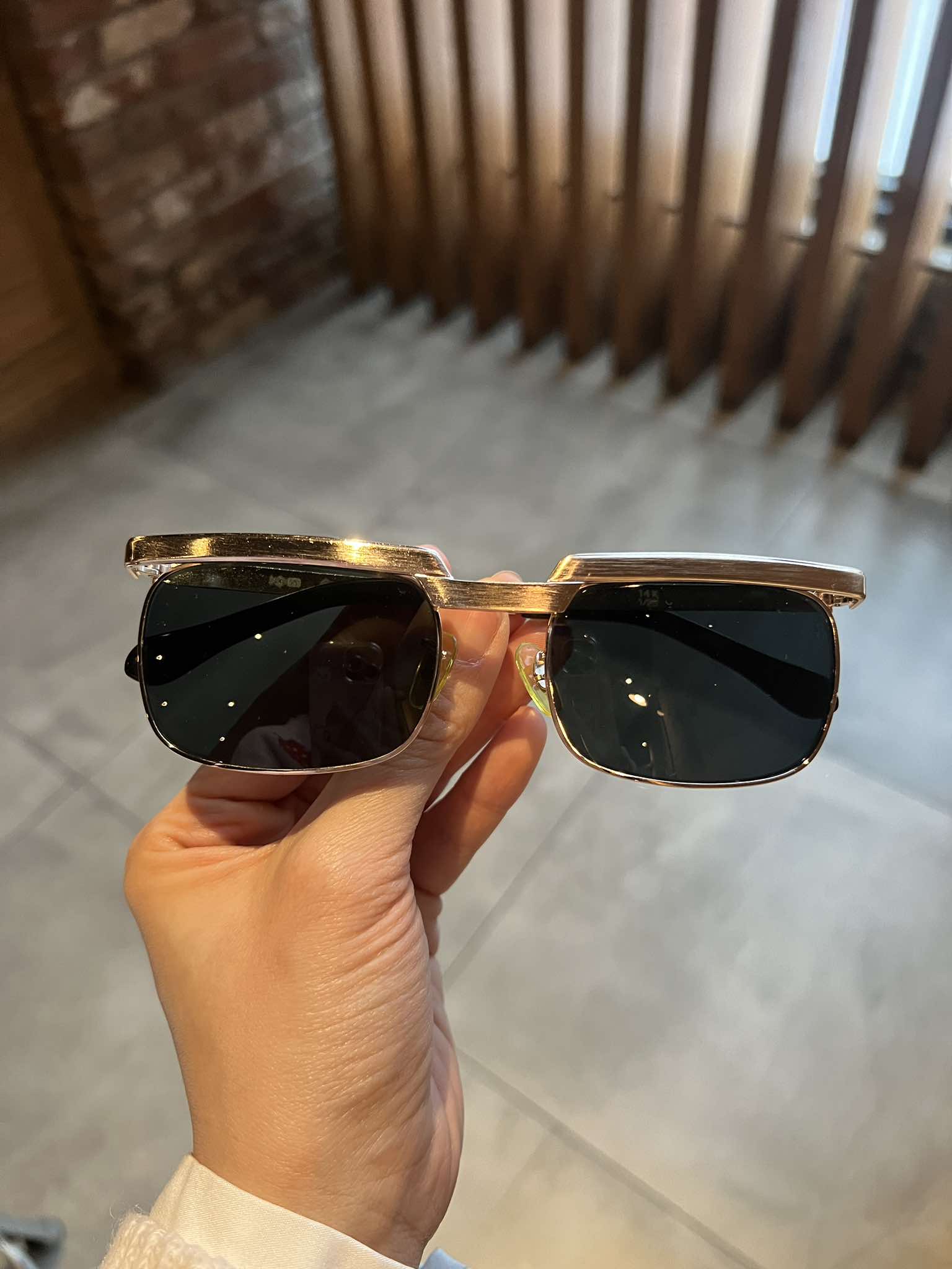 – Chi tiết trên thân kính sắc sảo, lớp phủ gọng kính vàng nhạt bền màu.