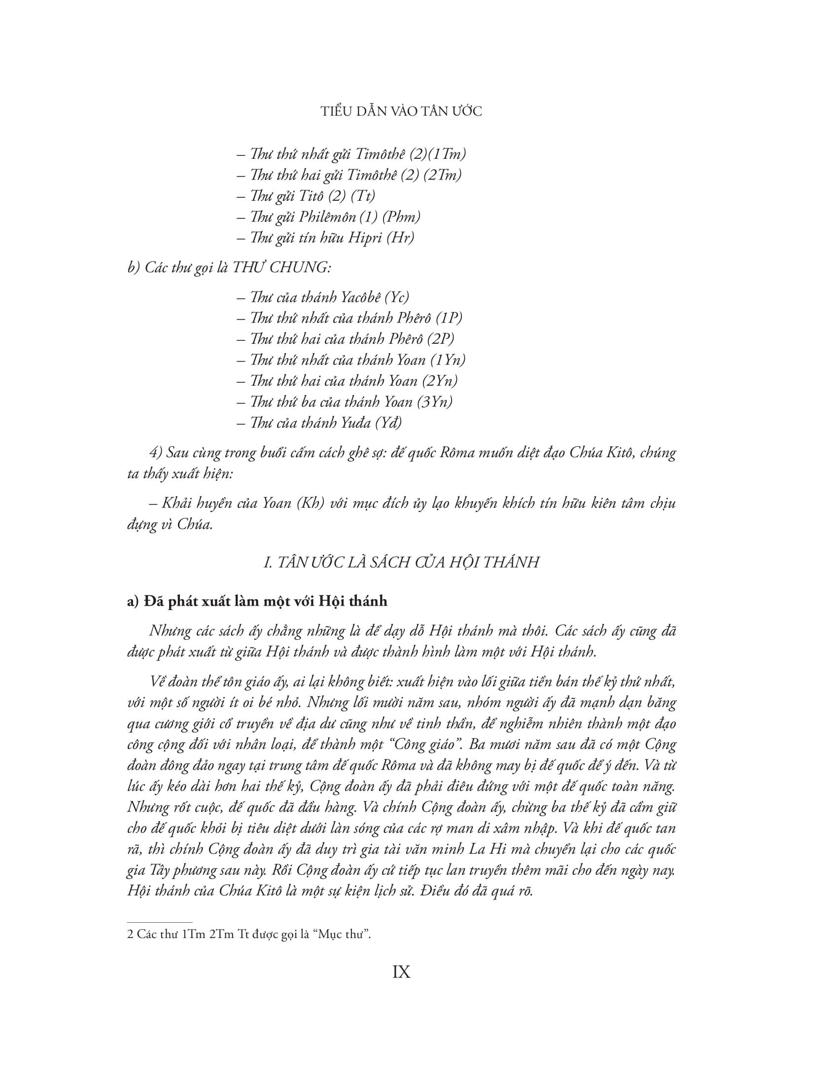 Kinh Thánh – Tân Ước gồm 27 sách hợp lại. Nói về đặc điểm chung của 27 sách này, ấn bản do Linh mục Nguyễn Thế Thuấn nhận định rằng đây là “Hai mươi bảy văn thư, dài vắn khác nhau, nội dung và ngoại diện cũng có lắm điều thù dị, đã được thu lại làm thành một bộ, và mang tên chung là Tân Ước, hay nói cho rõ hơn: Kinh Thánh của Giao ước mới”.