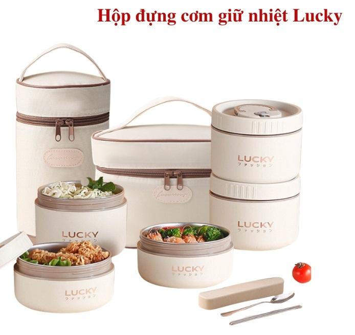 ✨[KoSuyTu] Hộp Cơm Giữ Nhiệt Lucky 2 Lớp 3 Tầng Rời - Chất Liệu Inox 304 - Tặng Kèm Túi Thìa Dĩa