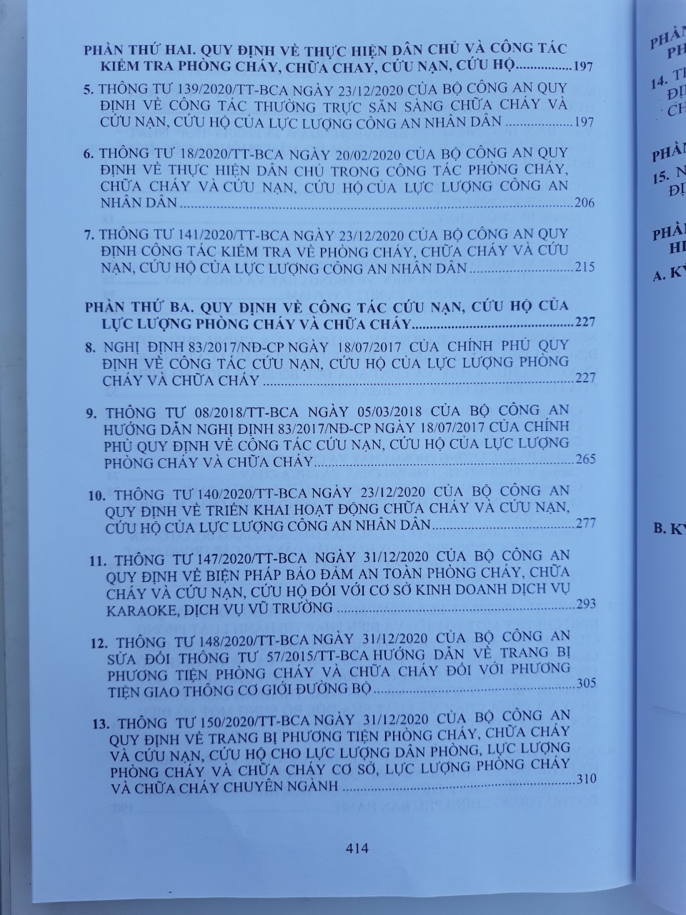 - Phần thứ ba: QUY ĐỊNH VỀ CÔNG TÁC CỨU NẠN, CỨU HỘ CỦA LỰC LƯỢNG PHÒNG CHÁY VÀ CHỮA CHÁY
