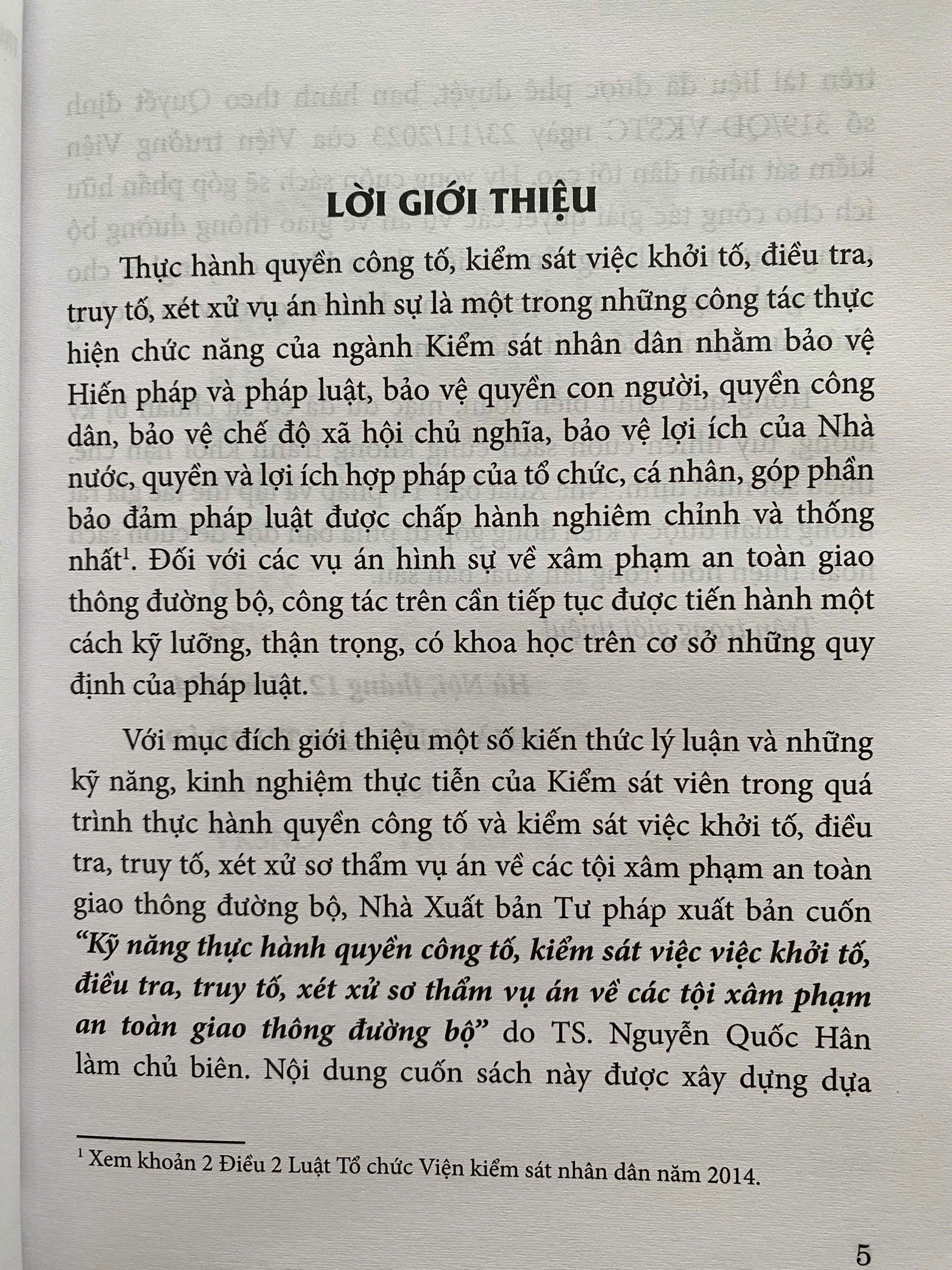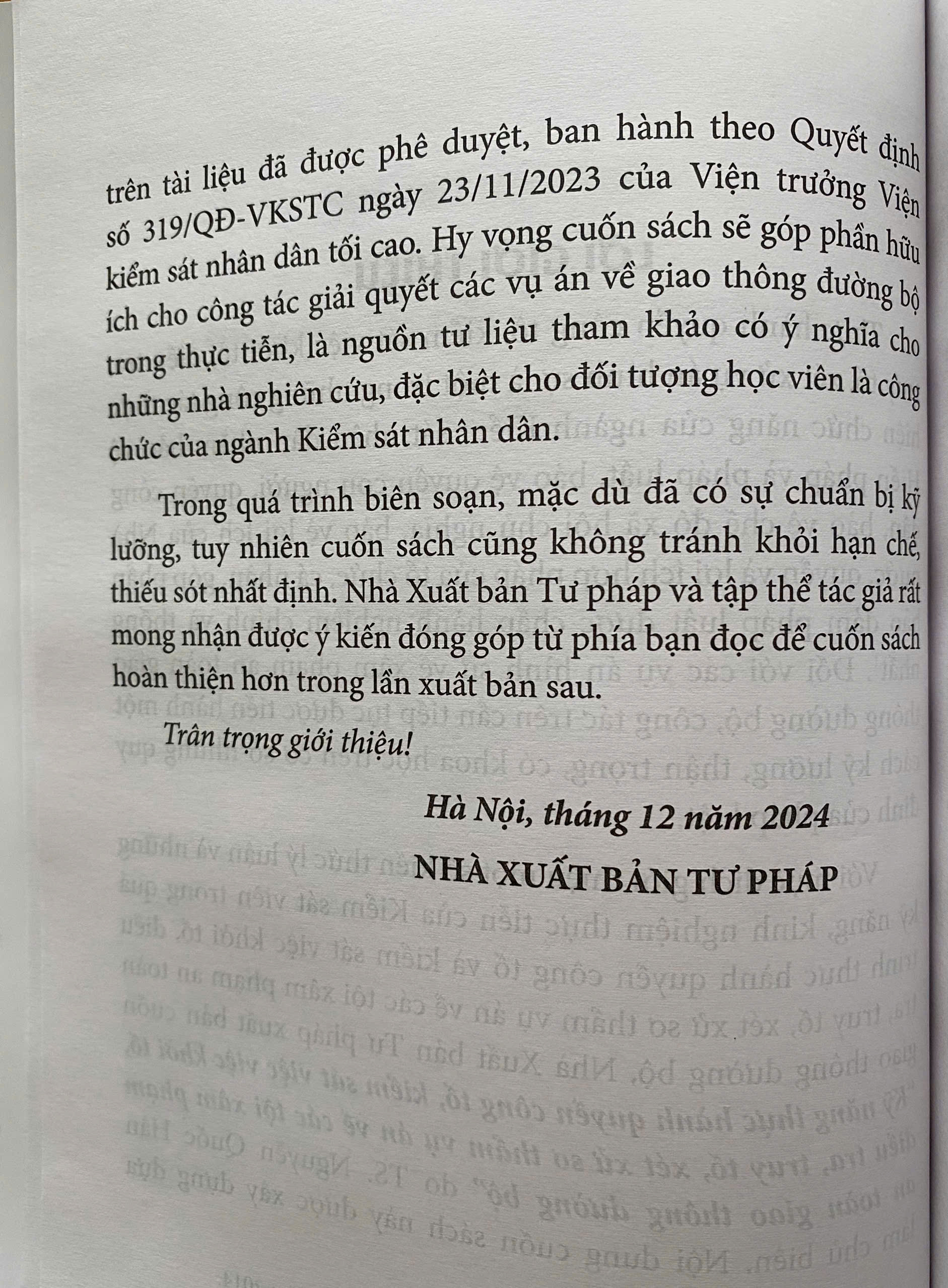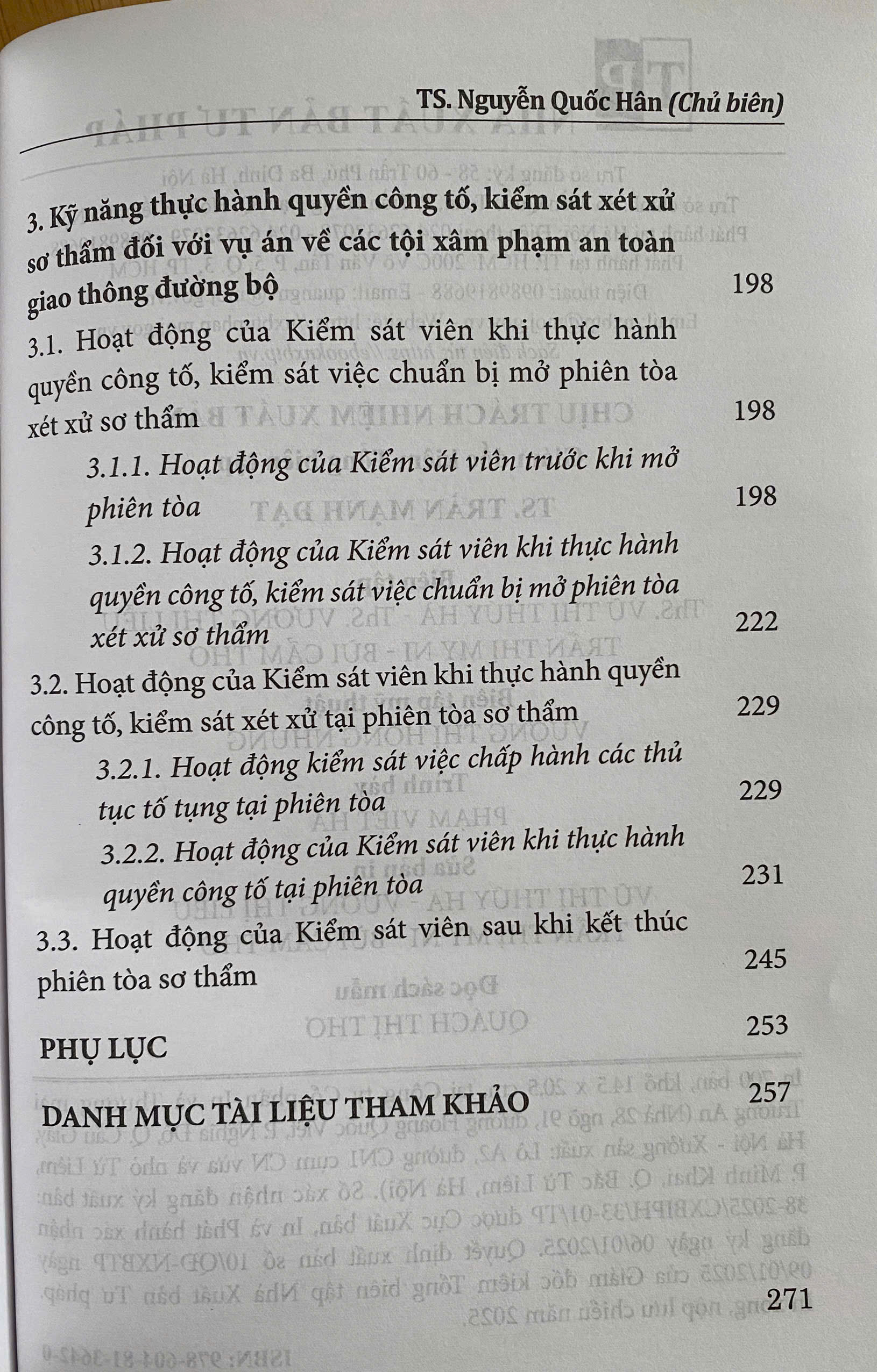 Mua tại TiktokVới mục đích giới thiệu một số kiến thức lý luận và những kỹ năng, kinh nghiệm thực tiễn của Kiểm sát viên trong quá trình thực hành quyền công tố và kiểm sát việc khởi tố, điều tra, truy tố, xét xử sơ thẩm vụ án về các tội x. âm phạm an toàn giao thông đường bộ, Nhà Xuất bản Tư pháp xuất bản cuốn " Kỹ năng thực hành quyền công tố, kiểm sát việc việc khởi tố, điều tra, truy tố, xét xử sơ thẩm vụ án về các tội x. âm phạm an toàn giao thông đường bộ" do TS. Nguyễn Quốc Hân làm chủ biên. Sách được xuất bản Tháng 1/2025 Khổ sách: 14.5x20.5 cm Số trang: 271 trang Bìa Mền