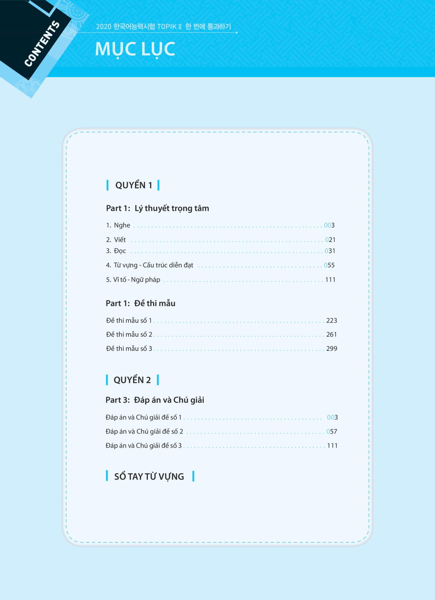 “TOPIK II - Thi là đậu” là giáo trình cập nhật mới nhất về kỳ thi và các dạng đề TOPIK II. Giáo trình cũng đáp ứng đầy đủ nhất yêu cầu của người muốn
