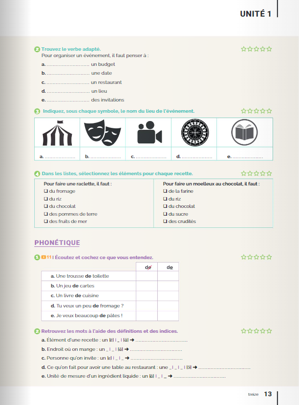 Le Cahier d'activité complète le livre de l'élève L'atelier + A2.