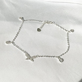 Lắc chân bạc 925 butterfly treo tiny đính pha lê xinh xắn dễ thương Dế Bạc – LC4392