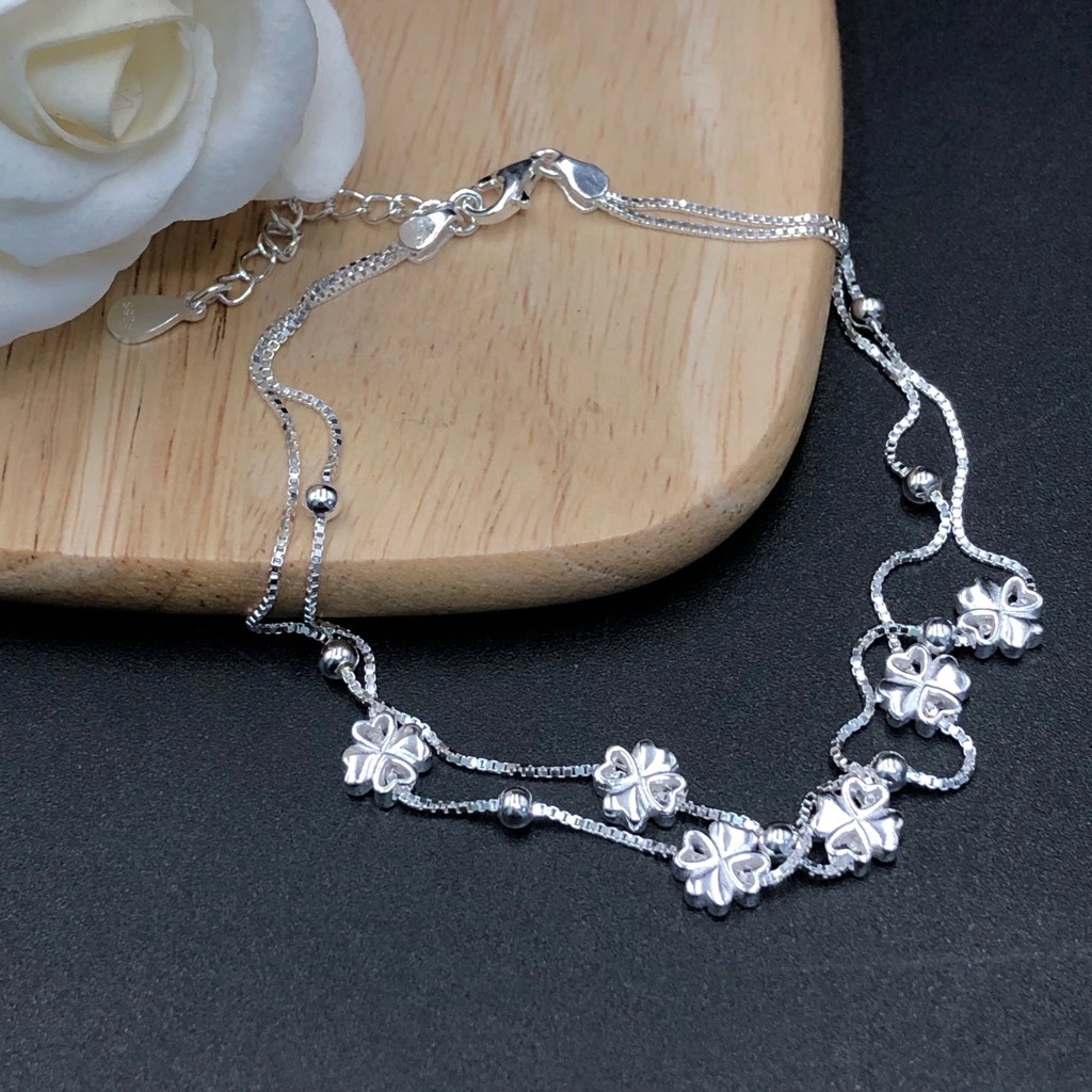 Lắc tay nữ cỏ 4 lá dây kép LTU508 Bạc Hiểu Minh