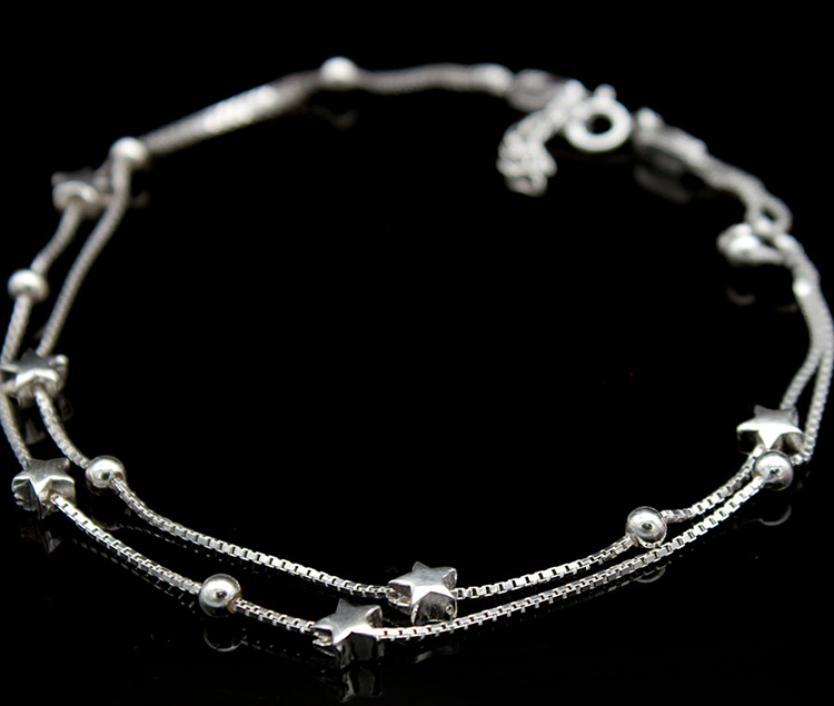 Lắc chân bạc 925 dây đôi gắn sao và bi xinh xắn nhẹ nhàng Dế Bạc - LC4095 - 2 Lắc chân bạc 925 dây đôi gắn sao và bi xinh xắn nhẹ nhàng. Lắc