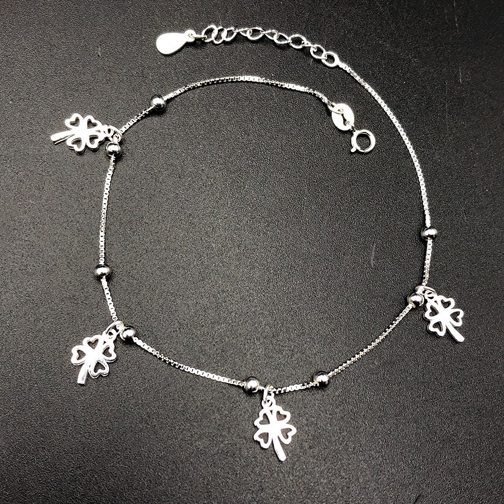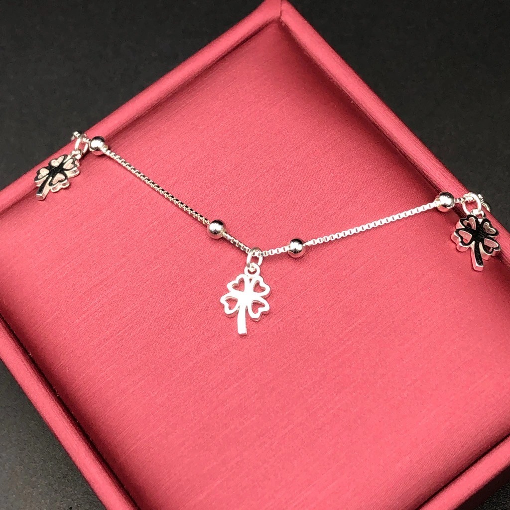 ✨Lắc Chân Nữ Cỏ 4 Lá May Mắn Bạc Hiểu Minh LC188