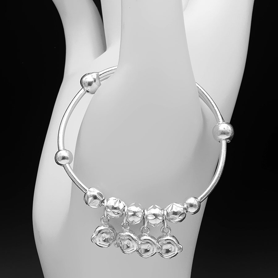 Vòng , Lắc Tay Chân Cho Bé Bạc Ta Dạng Kiềng Chuông Họa Tiết Phay BẠC HIỂU MINH LTE536