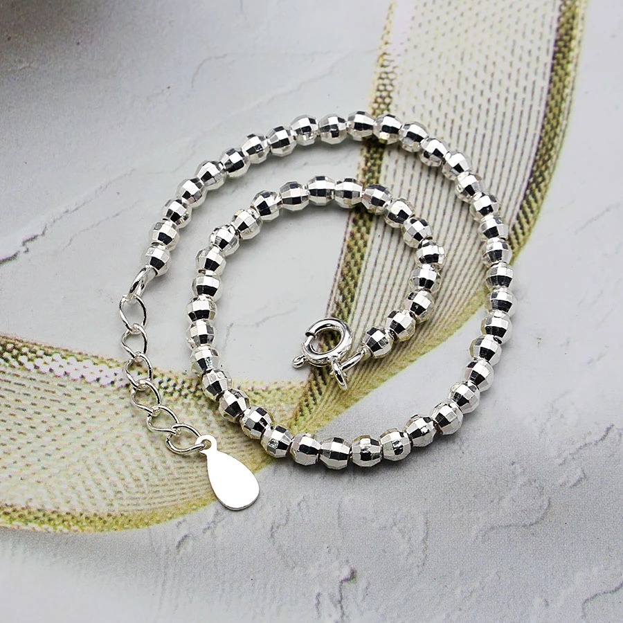 Vòng , Lắc Tay Nữ Bạc Ta Dây Mì Mix Bi Phay BẠC HIỂU MINH LTU002S