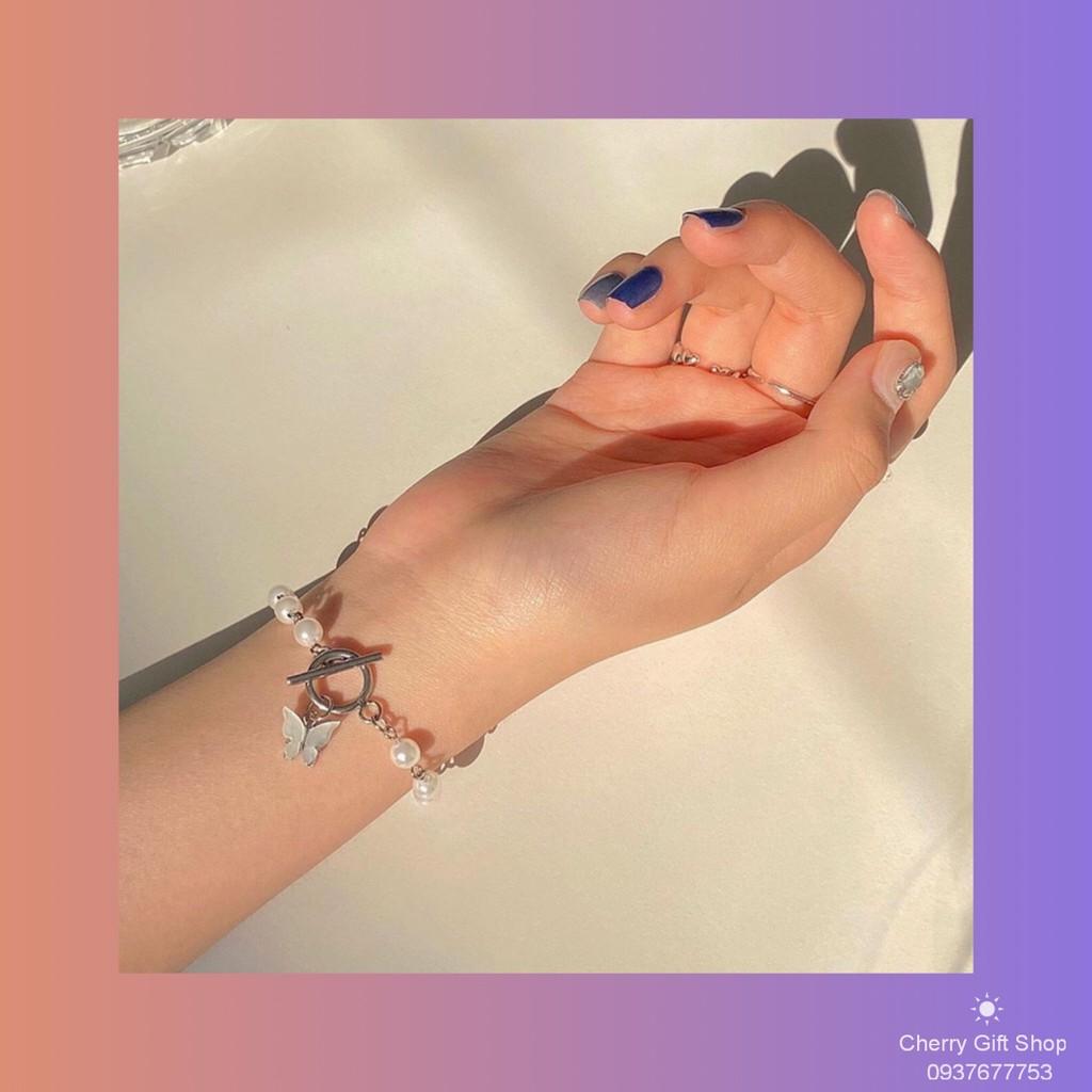 ✨Lắc Tay Vòng Tay Chuỗi Hạt Ngọc Mặt Hình Bướm Phong Cách Hàn Quốc