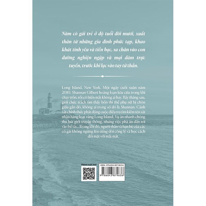Mua tại TiktokLạc Vào Tay Tử Thần Long Island, New York vào một ngày cuối mùa xuân năm 2010, Shanan Gilbert hoảng loạn kêu cứu trong khi đang trốn chạy, rồi cô gái ấy biến mất không ai hay. Bảy tháng sau, giới chức trách đã tìm thấy bốn thi thể phụ nữ bị chon giấu gần đó, nhưng không ai trong số đó là Shannan cả. Cảnh sát đã chính thức phát động cuộc điều tra tìm kiếm tên sát nhân hàng loạt vùng Long Island. Vụ án nhanh chóng thu hút giới truyền thông, nhưng việc phá án dần rơi vào bế tắc. Trong khi đó, người thân và bạn bè của các cô gái không ngừng lên tiếng đòi công lý và học cách đối mặt với mất mát.