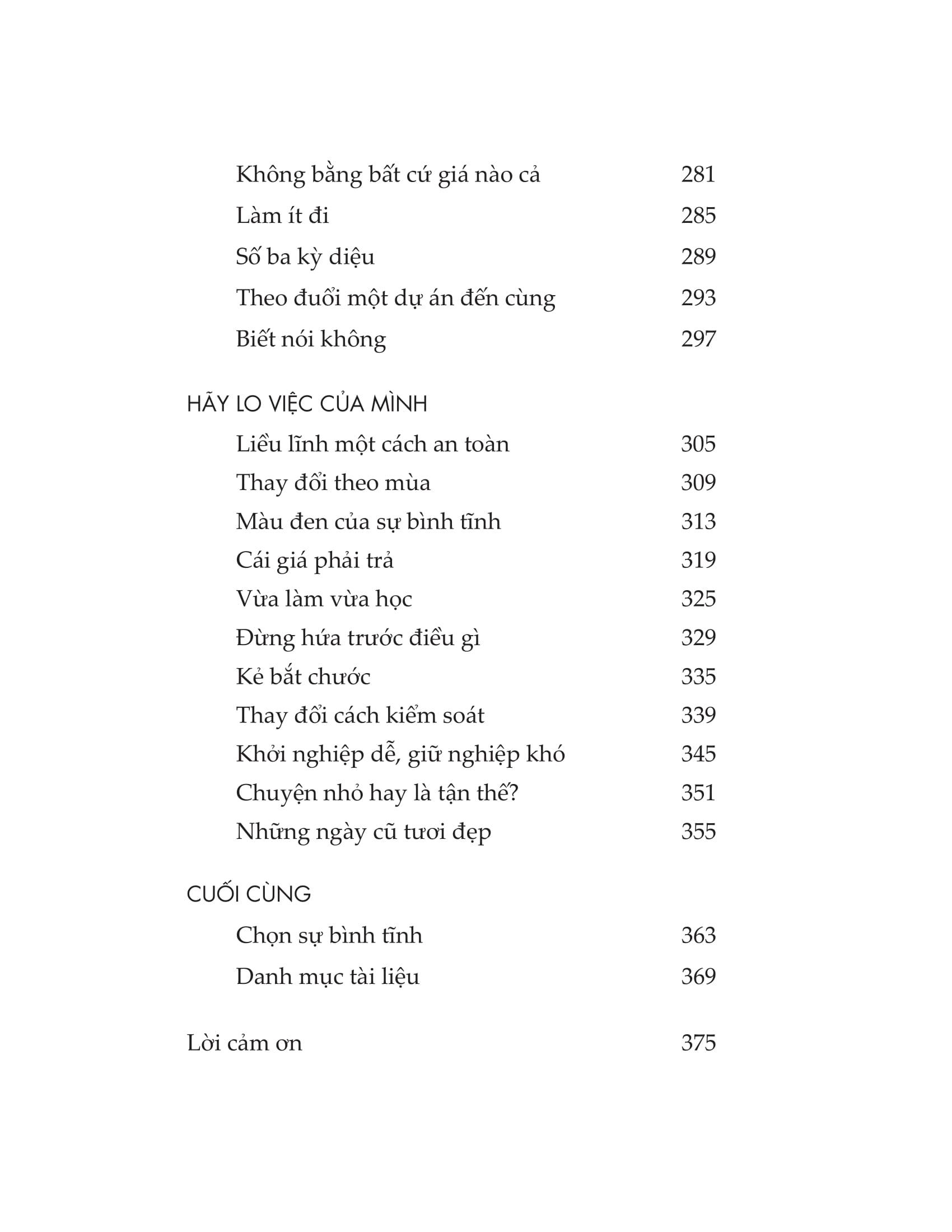 Môi trường làm việc hiện đại là mầm mống dịch bệnh. Sự bát nháo không nên trở thành trạng thái tự nhiên của công việc. Nỗi lo âu không phải là điều kiện tiên quyết cho sự phát triển. Ngồi trong phòng họp cả ngày dài không phải là cách để thành công. Tất cả đều chỉ là sự bóp méo của công việc, là tác dụng phụ của những mô hình khiếm khuyết và việc lạm dụng nó sẽ là con đường ngắn nhất để đẩy công ty đi đến vực thẳm. Hãy thay đổi công ty của mình, đừng đi theo đám đông.
