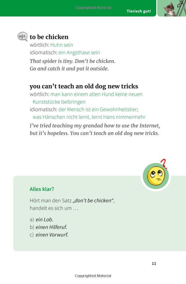 Diese 250 thematisch sortierten Redewendungen helfen Ihnen, bildhafte Alltagssprache zu verstehen. Beispielsätze veranschaulichen die richtige Verwendung, Quizfragen & Fettnäpfchen garantieren Spaß beim Lernen. So haben Sie bei Ihrem Gegenüber sicher bald "einen Stein im Brett".