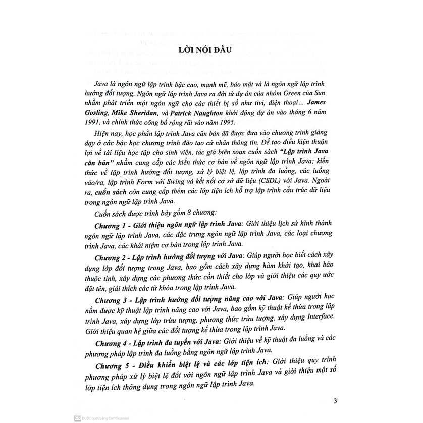 Cung cấp các kiến thức cơ bản về ngôn ngữ lập trình Java, kiến thức về lập trình hướng đối tượng, xử lý biệt lệ, lập trình đa luồng, lập trình from với swing và