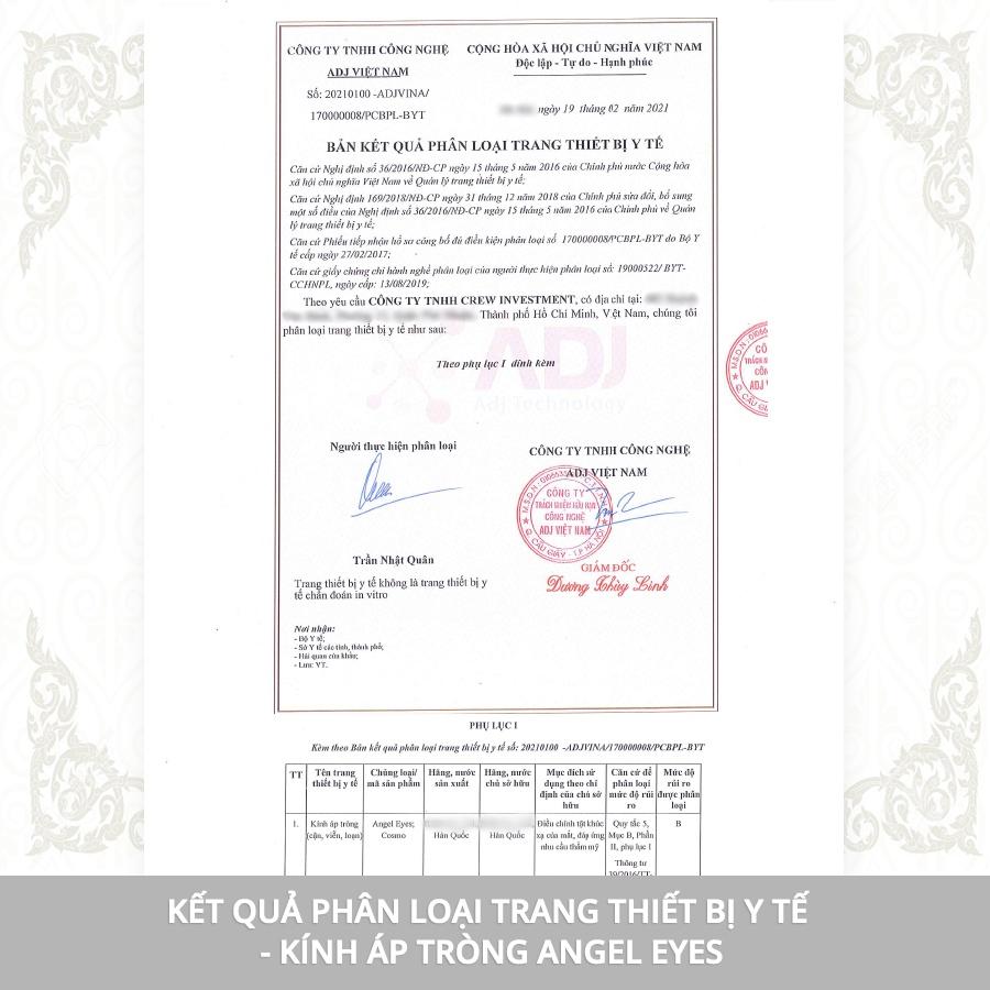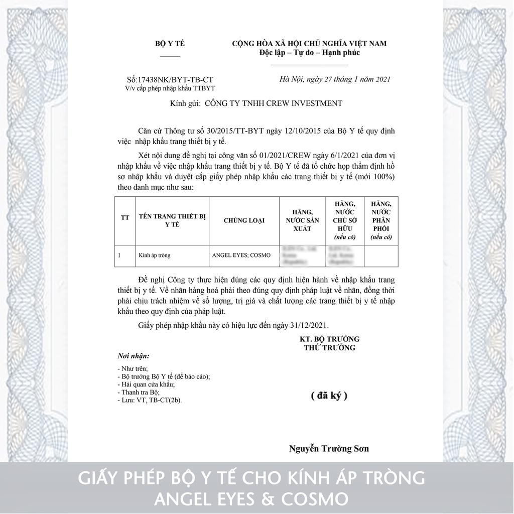 Tất cả các sản phẩm của Angel Eyes đều được nhập khẩu trực tiếp từ Hàn Quốc, có đầy đủ giấy chứng nhận của Bộ Y Tế.
