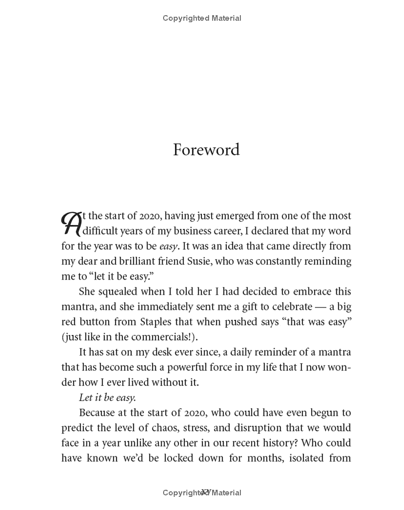 As readers turn these pages, they may hear echoes of A Course in Miracles, Abraham-Hicks, Byron Katie, Louise Hay, or Glennon Doyle, but what they are getting is a conversation with a new friend who has been there, done that, and knows the drill. Susie Moore's writing amuses and inspires. Each brief chapter delivers a poignant or funny message encouraging readers to become more free and powerful. Her stories about everyday interactions, such as dinner at a chichi restaurant or lunch with a friend, contain life lessons that don't deny the reality of suffering but pivot toward a life-changing way of processing pain, grief, loss, and anxiety. Moore ses forgiveness, family, friendship, health, love, work, and money in a wise but conversational tone that allows for the reader's own insights and epiphanies to take hold. The results make everything from deciding what to cook for dinner to having more intimacy with a spouse, recovering from a painful past, or disconnecting from a toxic friend not only possible but easy. Moore's unique take on life and how to live it is destined for bedside tables and morning meditations for anyone striving to let go of the struggle and open to the real power and peace we all possess.