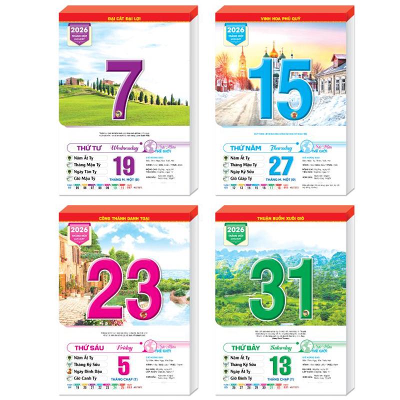 - Quyển Bloc lịch 2026 dùng gắn vào các loại bìa lịch treo tường, thay thế Bloc năm cũ. * QUY CÁCH BLOC LỊCH: - Chất lượng in công nghệ hiện đại, sắc nét, in