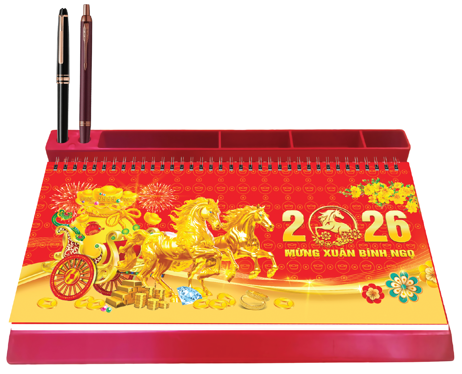 Lịch Tết 2026 - Lịch Bàn Đế Nhựa (13 x 28) Lịch để bàn đế nhựa là sản phẩm kết hợp giữa tính tiện dụng và thẩm mỹ cao, phù hợp cho nhiều không gian