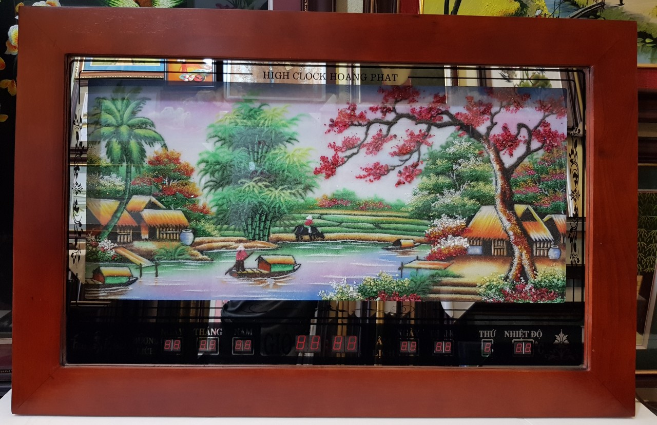 Sản phẩm tranh đá cảnh đồng quê Việt Nam gắn đèn led, đồng hồ điện tử ,giây ,phút , giờ, ngày , tháng năm , lịch âm dương và nhiệt độ. Tranh cảnh đồng quê