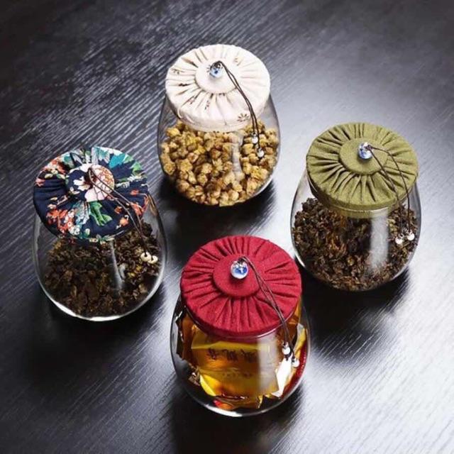 ✨Lọ chè thuỷ tinh nắp vải 800g