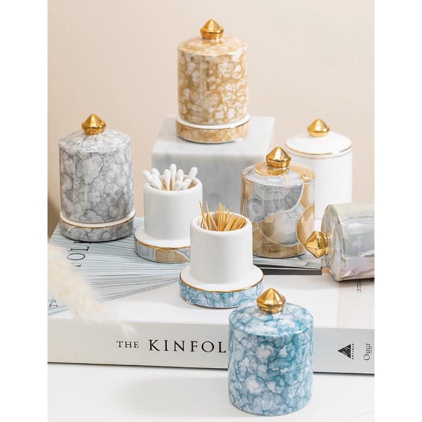 Hũ tăm bằng sứ cao cấp Màu sắc sang trọng Ngoài công dụng chính còn là phụ kiện trang trí trên bàn ăn